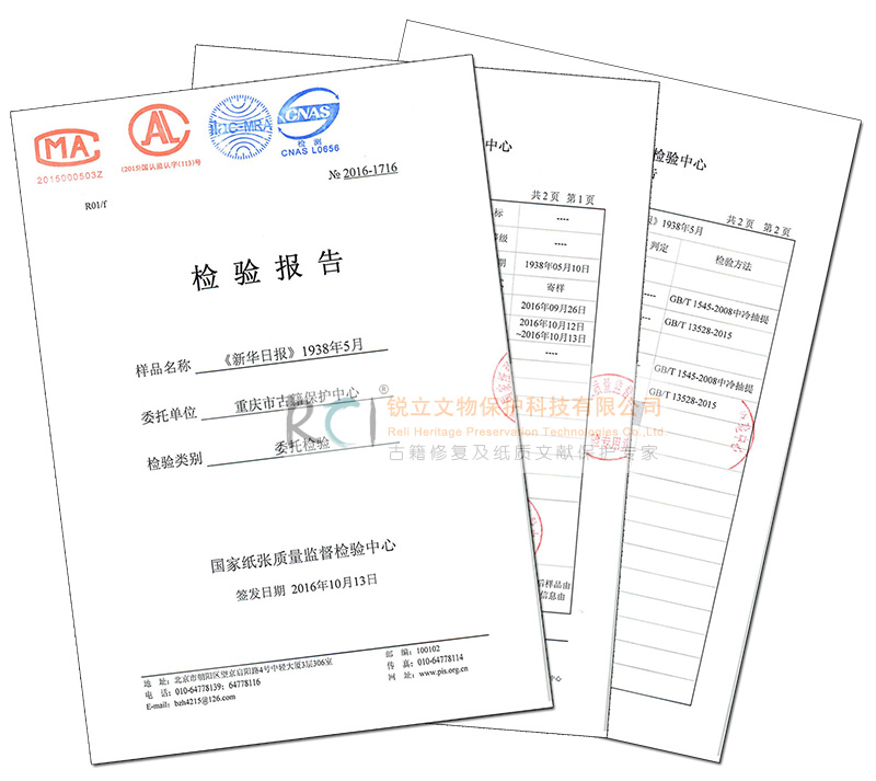 經(jīng)過第三方專業(yè)檢測(cè)檢驗(yàn),此份報(bào)紙脫酸效果顯效,大幅提升了其存留壽命。