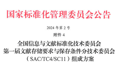 全國信息與文獻標準化技術委員會 第一屆文獻存儲要求與保存條件分技術委員會正式成立據(jù)國家標準化管理委員...